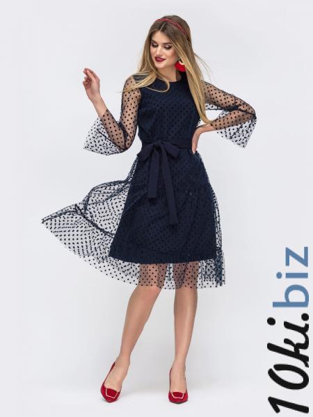 Нарядное расклешенное платье из креп-дайвинга. Верх изделия дополнен невесомой фатиновой сеткой в горох. Пояс из основной ткани в комплекте. Подойдёт для типа фигуры «песочные часы», «груша» и «прямоугольник».